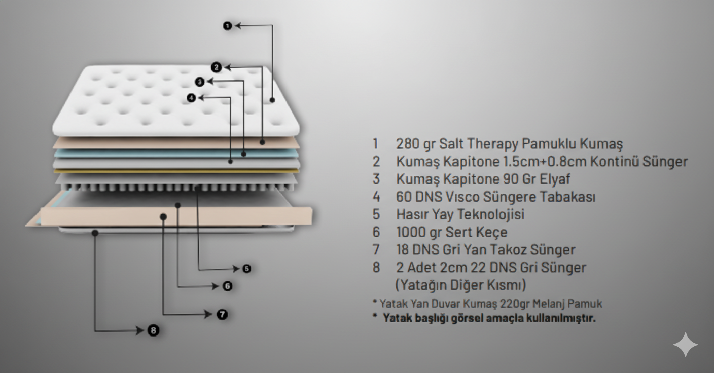 İçeriğinde yer alan Visco Sünger sayesinde rahat ve konforlu bir uyku için tasarlanmıştır. Bu özel süngerin yer aldığı Purolana yatağı , yoğunluk, elastik ve esneklik imkanları ile öne çıkmaktadır. Ergonomik ve rahat bir yatak isteyenlerin ilk tercihleri arasında yer alan bu yatak, açık hücreli yapıya sahip olduğundan dolayı hava sirkülasyonunu en üst seviyeye taşımaktadır. Hava gözenekleri sayesinde terlemeyi önler ve ısı derecesinin sabit kalmasını sağlar.
